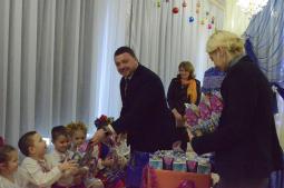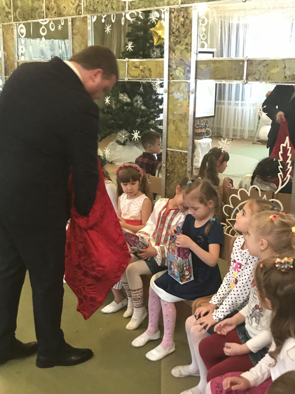 20.12.2017 депутат Криворізької міської ради Гресько В. та голова Довгигцівської районної в місті ради Ратінов І. привітали вихованців дошкільних навчальних закладів №№ 111, 210, 128 в кількості 703 дитини з Днем святого Миколая та вручили солодкі подарунки.
