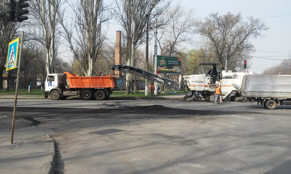 Підготовка вул. Постишева та вул. Блюхера до асфальтування. Працює фреза.