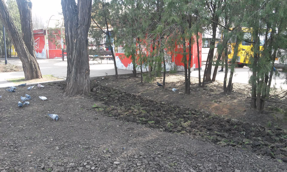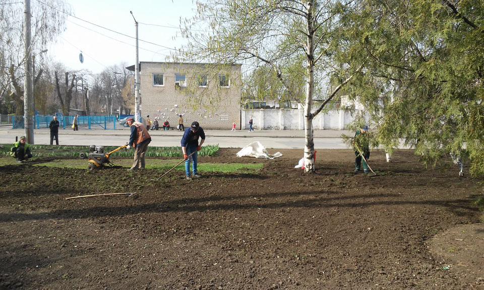 Благоустрій площі Привокзальної: вигрібання чагарників, засівання газонів та обрізка зелених насаджень.