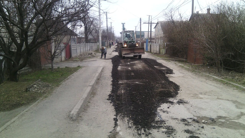Відпрацьоване асфальтне покриття використовуємо для підсипання вулиць приватного сектору згідно заяв мешканців. 17.03.2016 підсипано вул. Вільнюська, Обнорського та Янки Купали. Продовжуємо «безвідходну» роботу на території Довгинцівського району.