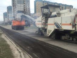 17.03.2016 розпочата підготовка вул. Сахарова під асфальтування, працює фреза.