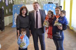 Голова Довгинцівської районної в місті ради, Ратінов Ігор Гарійович, поздоровив присутніх з Новорічними святами. За підтримкою депутата обласної ради, Салащенко Ірини Іванівни, дітям вручено солодкі подарунки.