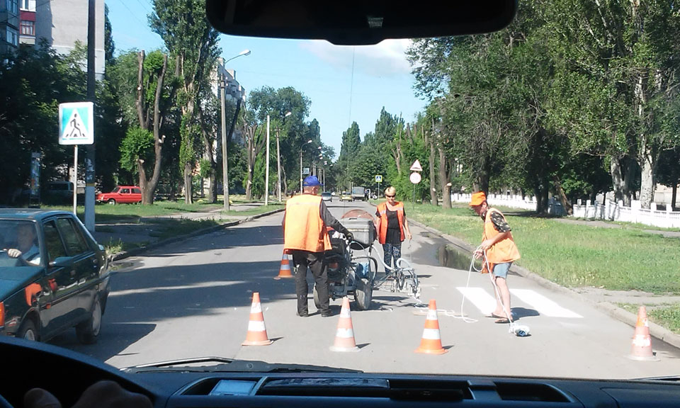 Відновлено роботи щодо нанесення розмітки на дорогах Довгинцівського району, сьогодні бригада працювала на вул. Промислова.