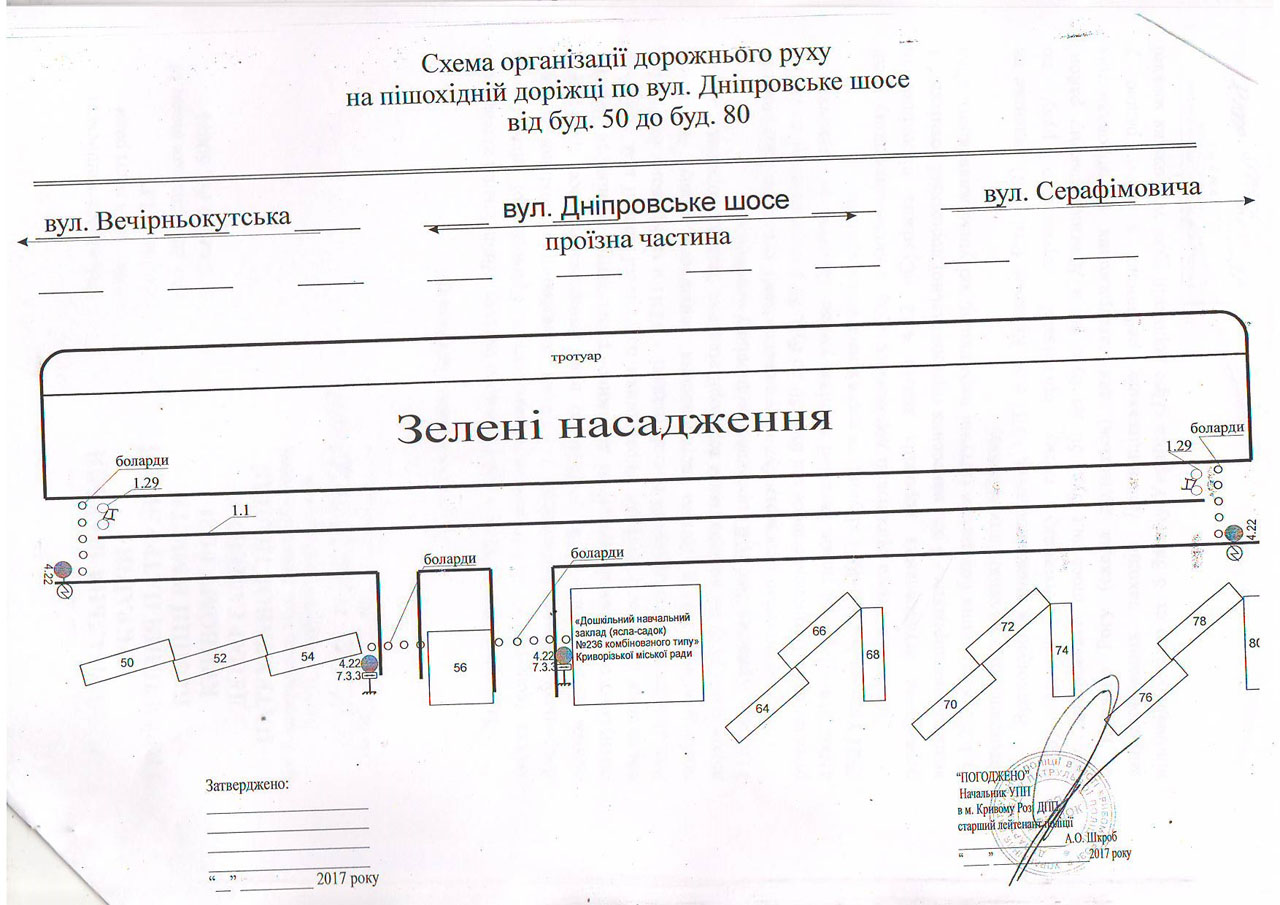 № 161 Про затвердження схеми організації дорожнього руху по вул. Дніпровське шосе від буд. 50 до буд. 80 в Довгинцівському районі