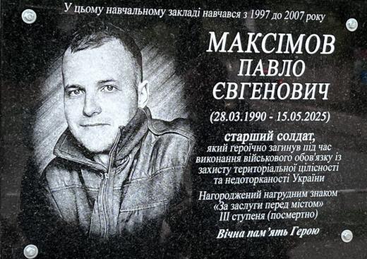 МАКСІМОВ ПАВЛО ЄВГЕНОВИЧ, загинув під час під час виконання військового обов’язку із захисту територіальної цілісності та недоторканості України.