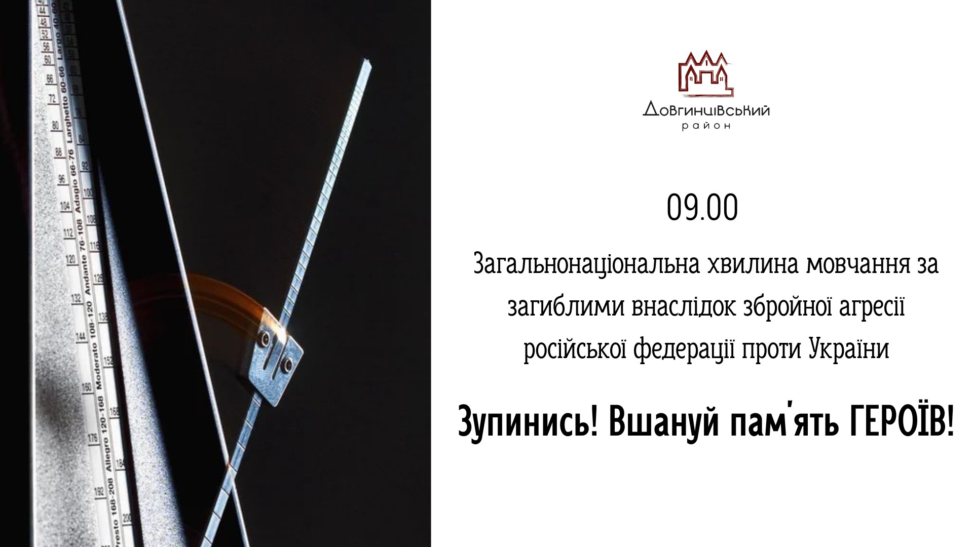09:00 Загальнонаціональна хвилина мовчання за загиблими внаслідок збройної агресії російської федерації проти УКРАЇНИ