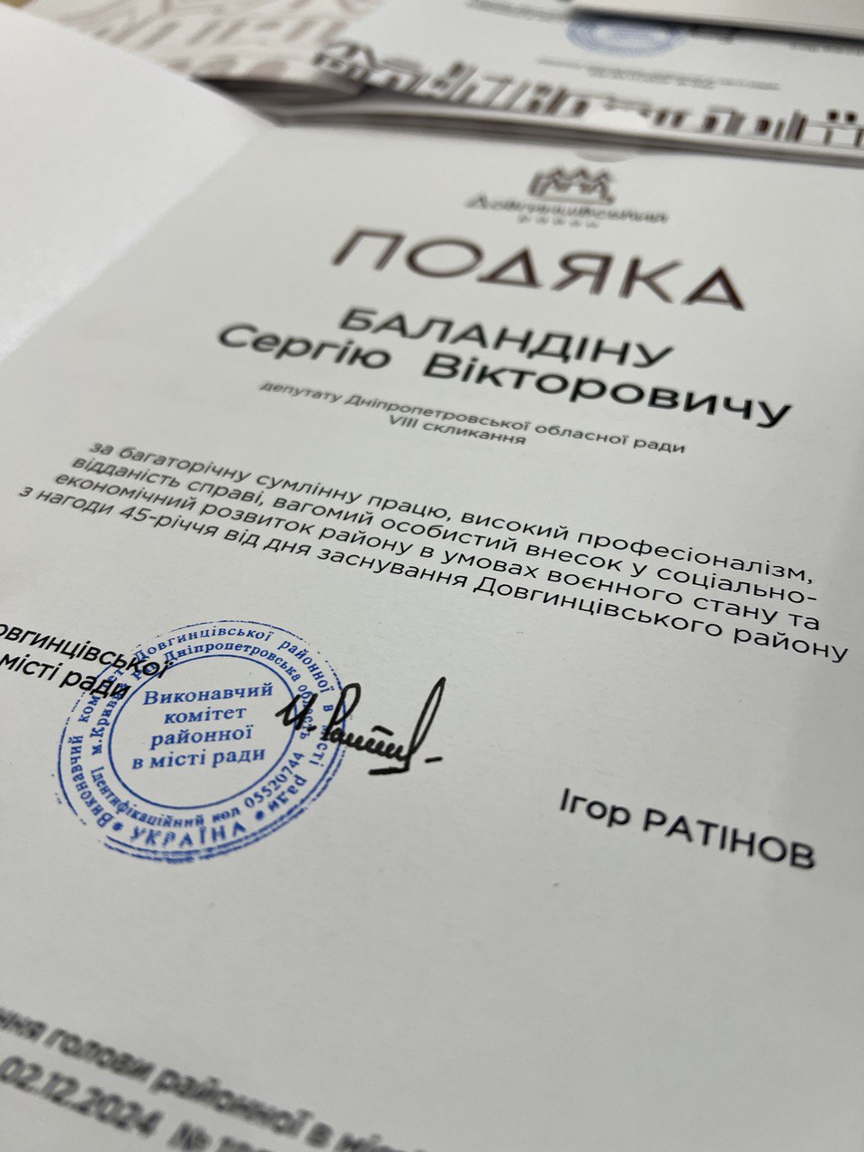 Урочистий прийом голови районної в місті ради з нагоди 45-річчя від дня заснування Довгинцівського району та Дня Збройних Сил України