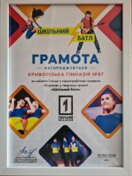 Вітаємо талановитих дітей Криворізької гімназії №87 та їх педагога-організатора з зайнятим І місцем у проєкті «Шкільний батл»