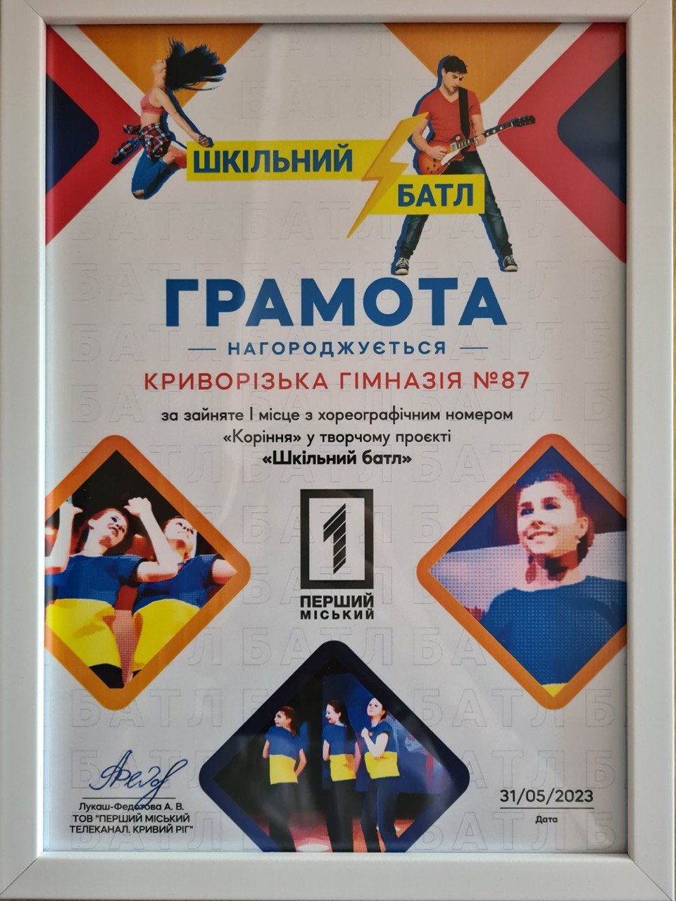 31 травня у Криворізькому академічному міському театрі драми та музичної комедії імені Тараса Шевченка відбулась урочиста церемонія нагородження переможців міського проєкту-конкурсу «Шкільний батл» серед закладів загальної середньої освіти міста Кривого Рогу, який проходив за ініціативи «Першого міського телеканалу», міського Департаменту освіти і науки за підтримки Ради оборони міста.