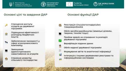 Функціонує відповідно до Закону України "Про інформаційно-комунікаційну систему "Державний аграрний реєстр", де визначено поняття ДАР та основні правові, організаційні і фінансові засади створення та функціонування ДАР.