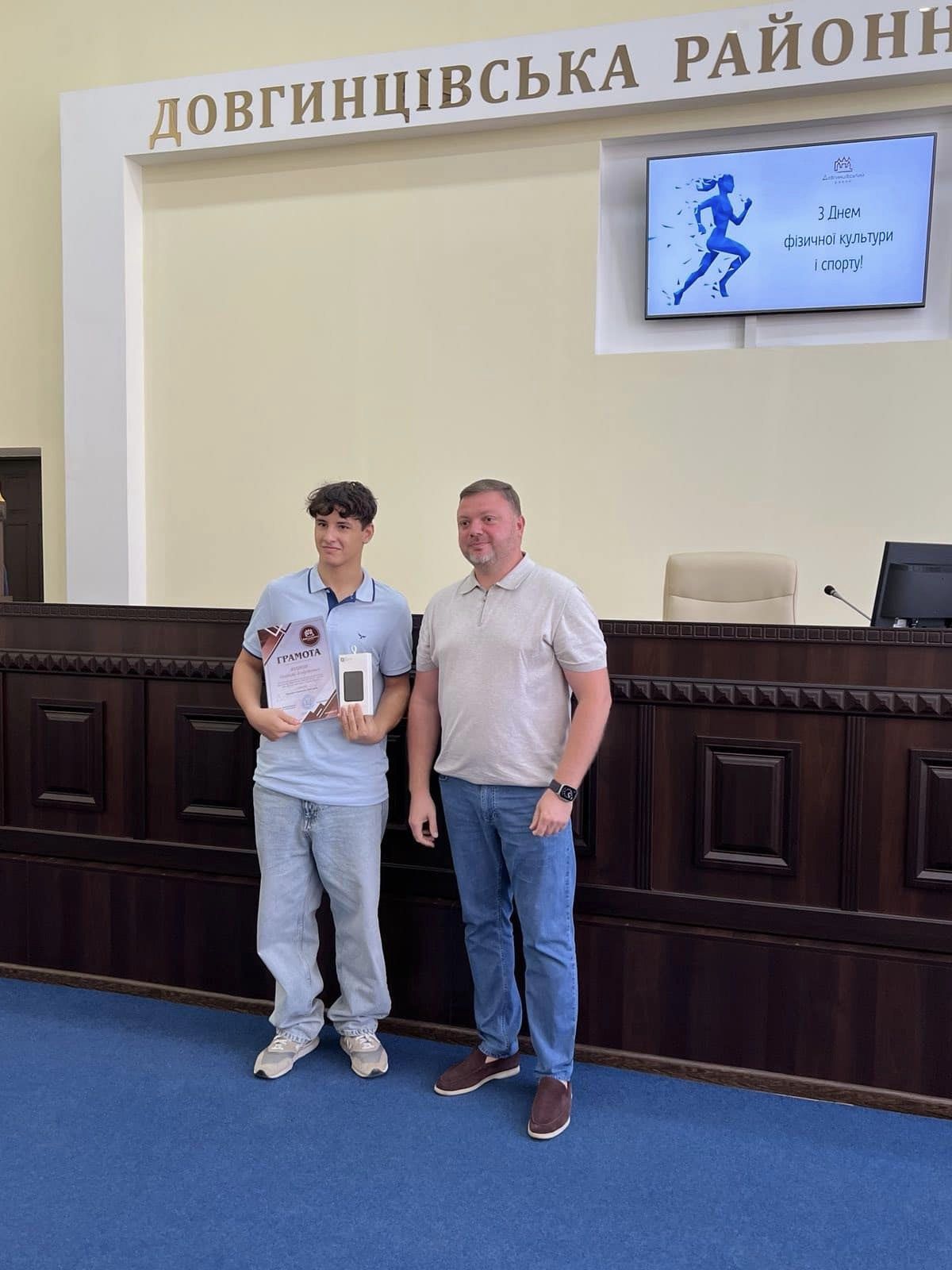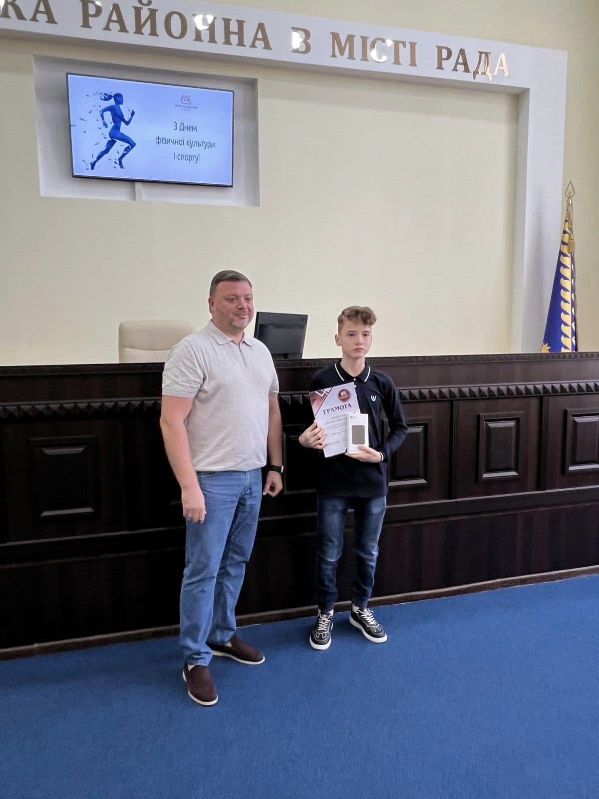 Сьогодні голова районної в місті ради Ігор Ратінов відзначив юних спортсменів району з різних видів спорту та їхніх тренерів нагородами з нагоди Дня фізичної культури і спорту.
