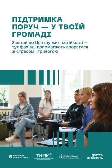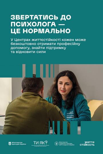 Можливість безоплатно та безбар’єрно отриманти психосоціальну підтримку в просторах центрів життєстійкості