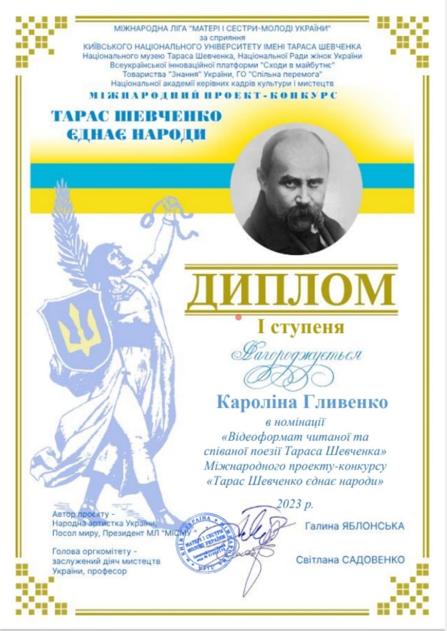Учні музичної школи №11 стали переможцями у Міжнародному проєкті-конкурсі «Тарас Шевченко єднає народи»