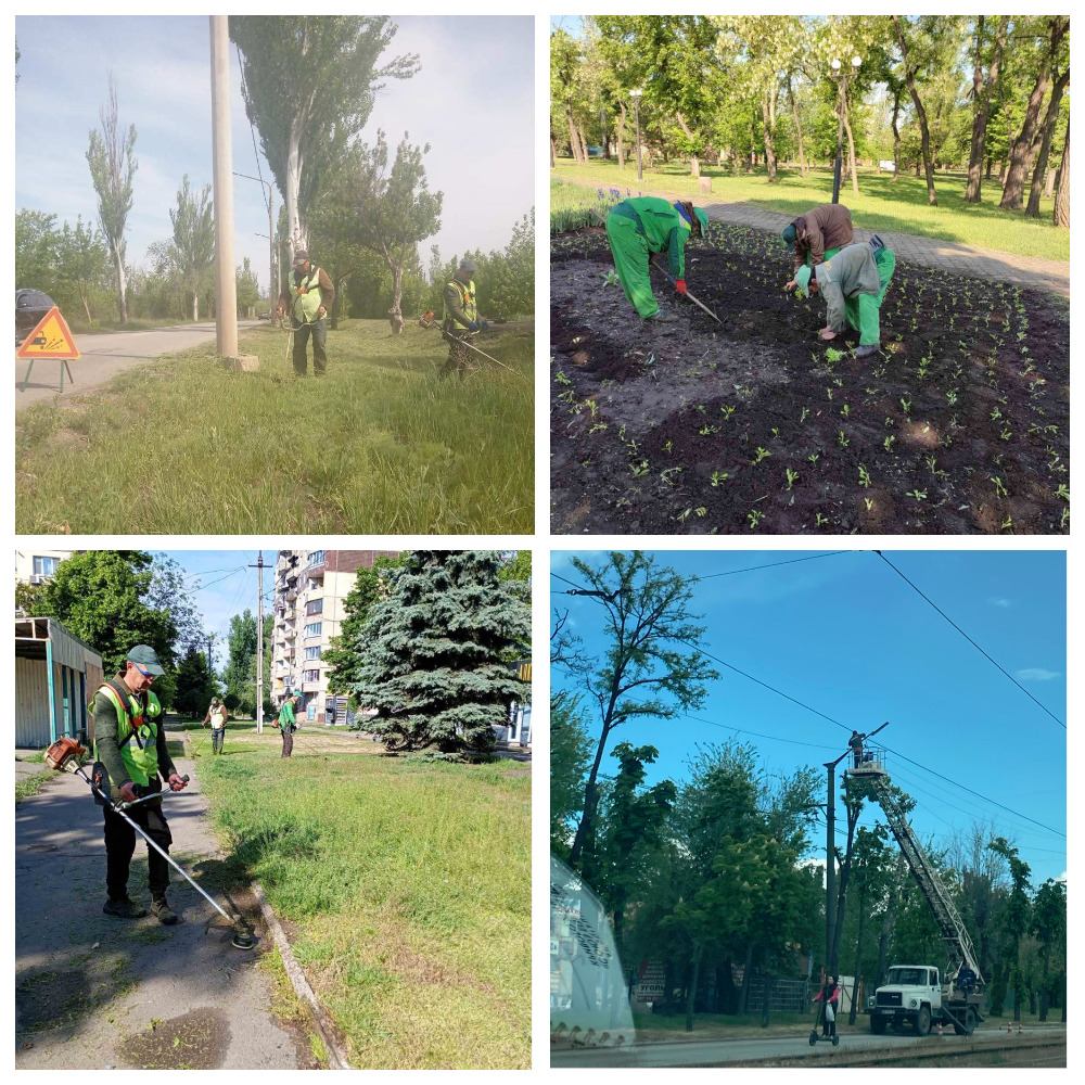 Упродовж тижня здійснювалось прибирання прибудинкових територій, випадкового сміття, контейнерних майданчиків, автошляхів, тротуарів. Також організовано роботи з покосу трави, висадки однорічних рослин в парках та скверах, догляд за багаторічними рослинами.