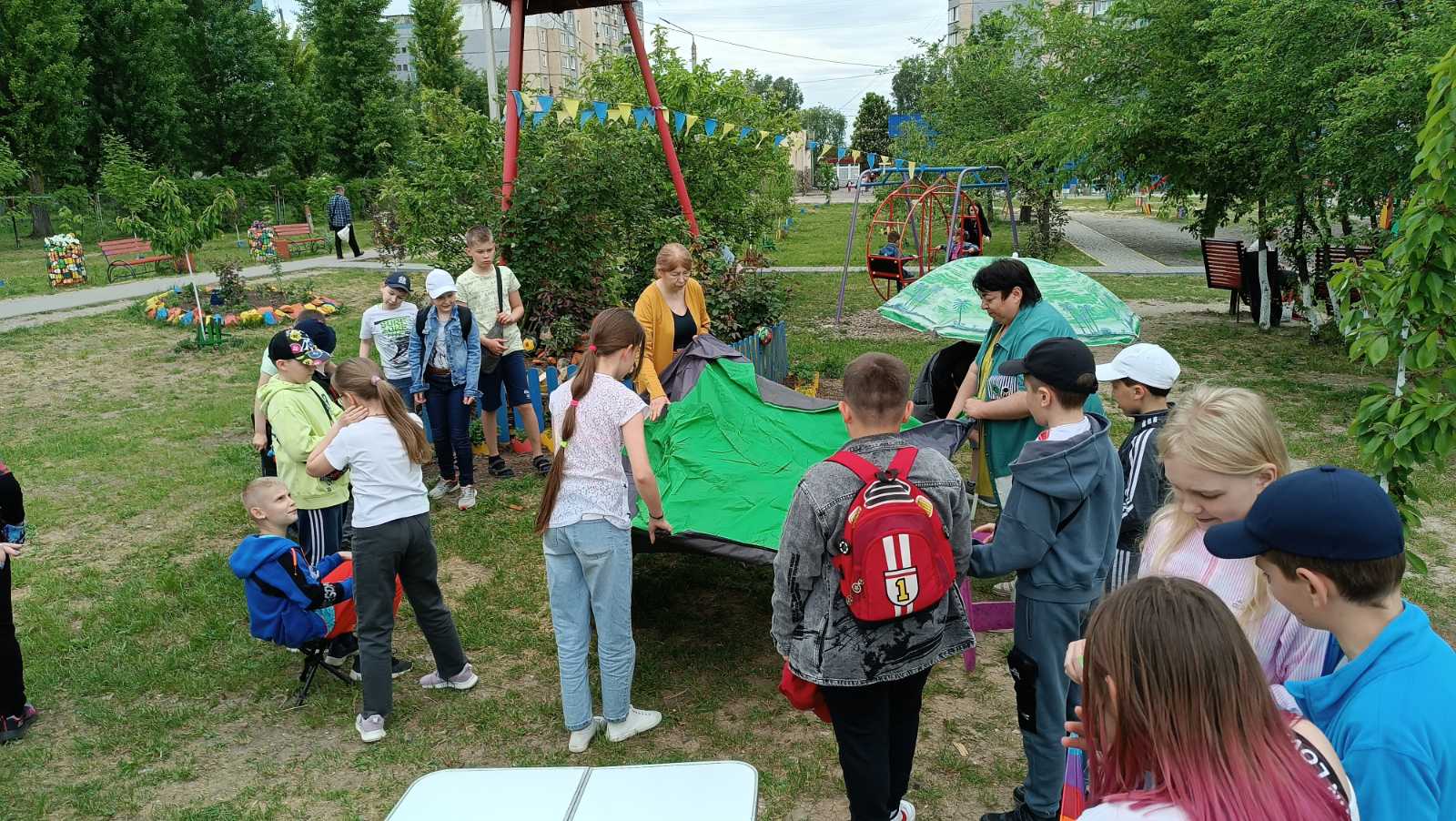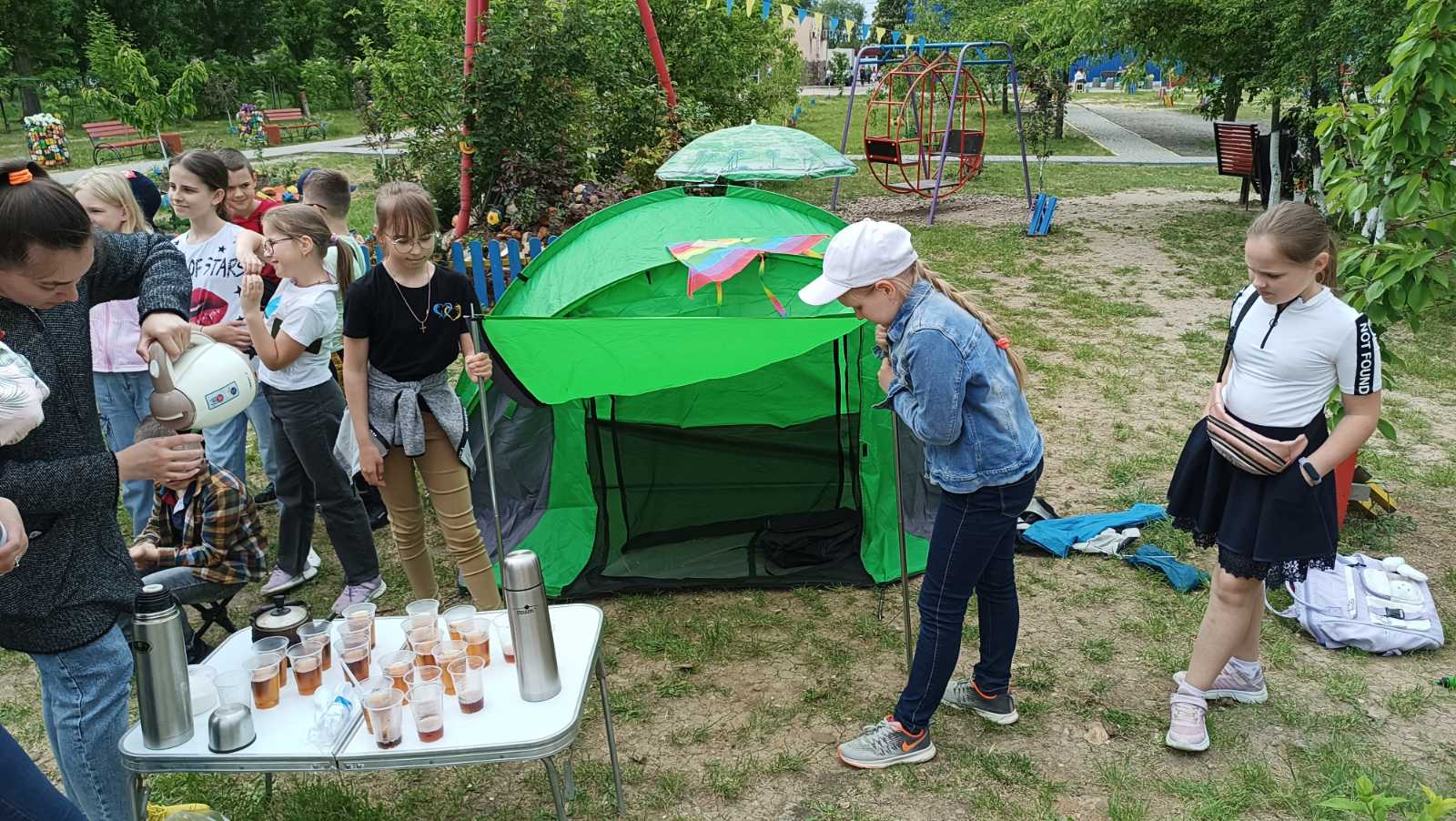 Після віртуального знайомства всі помандрували в парк «Щастя». Тут вони навчилися збирати справжній намет та познайомились з туристичним інвентарем. У невимушеній атмосфері за чашкою чаю учасники заходу ділилися своїми враженнями про побачене і почуте.