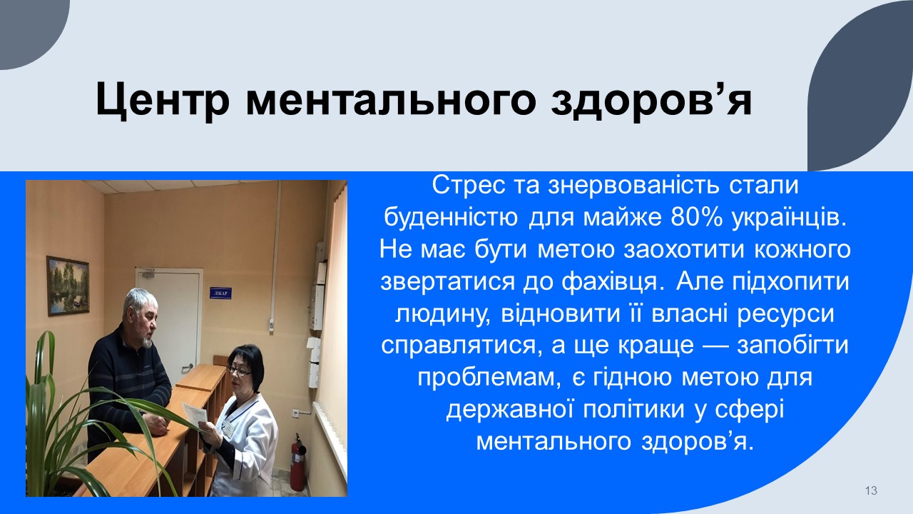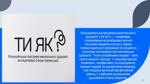 Робота центру ментального здоров`я в рамках реалізації Всеукраїнської програми ментального здоров`я `Ти ЯК?`