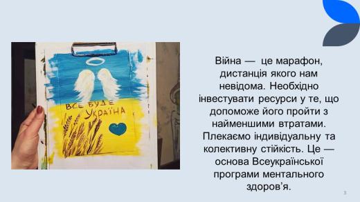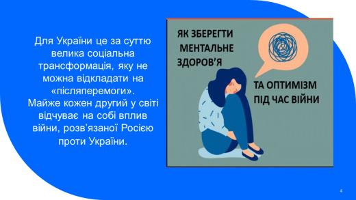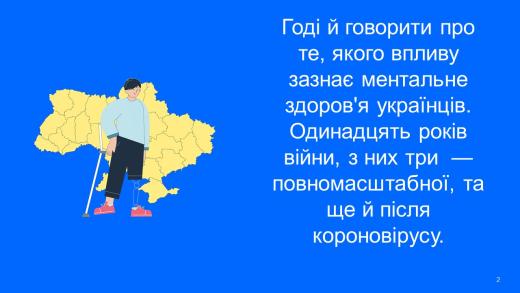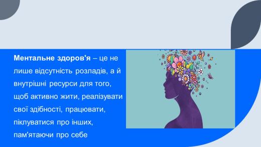 Ментальне здоров'я – це не лише відсутність розладів, а й внутрішні ресурси для того, щоб активно жити, реалізувати свої здібності, працювати, піклуватися про інших, пам'ятаючи про себе.