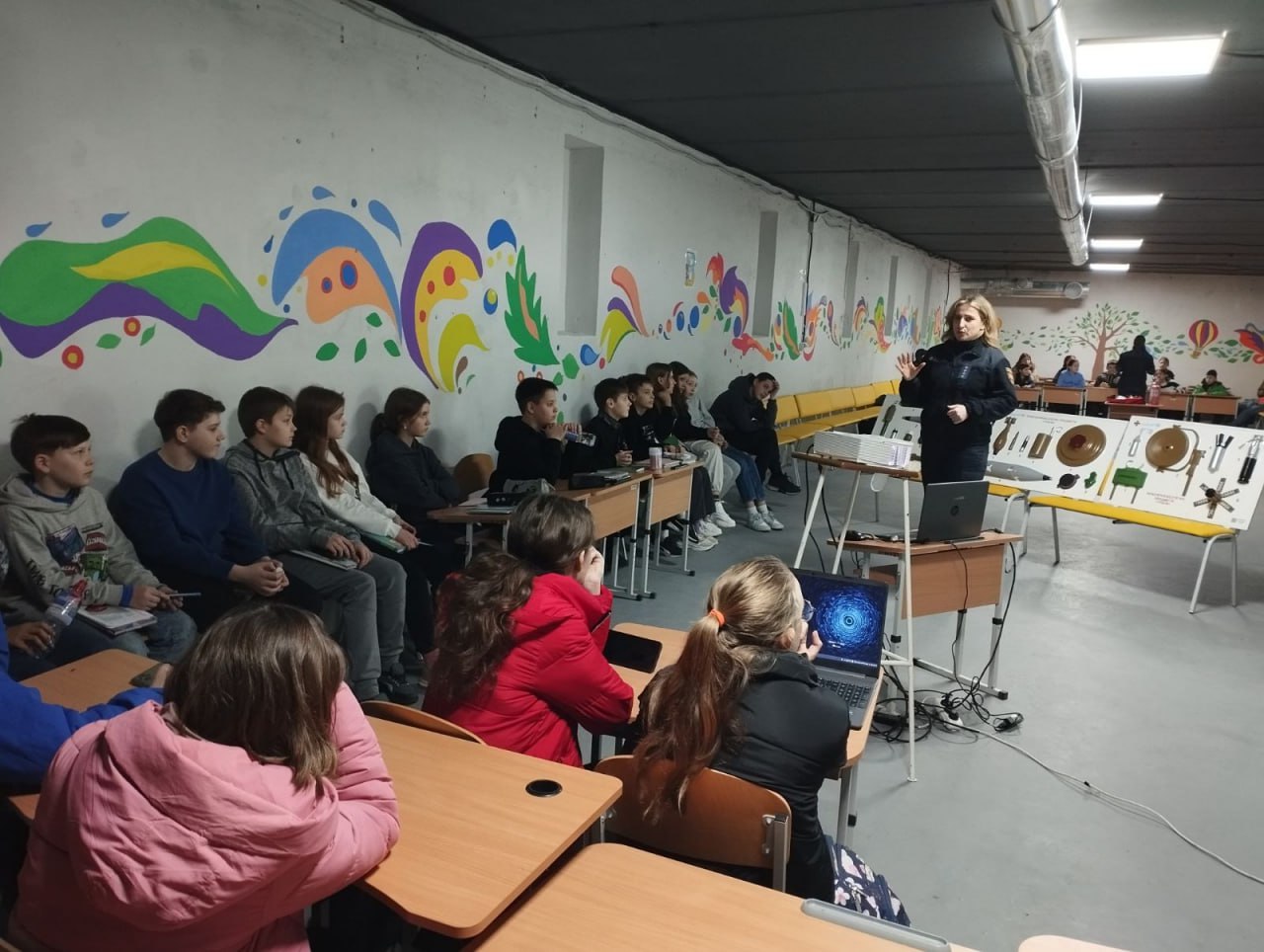 У «Мобільному класі безпеки» діти дізналися про правила поводження з вибухонебезпечними предметами, засвоїли, що торкатися невідомих предметів небезпечно і що робити та кому телефонувати у разі небезпеки. Заходи з безпеки під час війни є важливими для захисту життя та безпеки учнів, персоналу та всієї гімназійної спільноти під час потенційно небезпечних ситуацій. Такі заходи не тільки допомагають готувати учнів до можливих небезпек, але й забезпечують відчуття безпеки та впевненості у майбутньому.