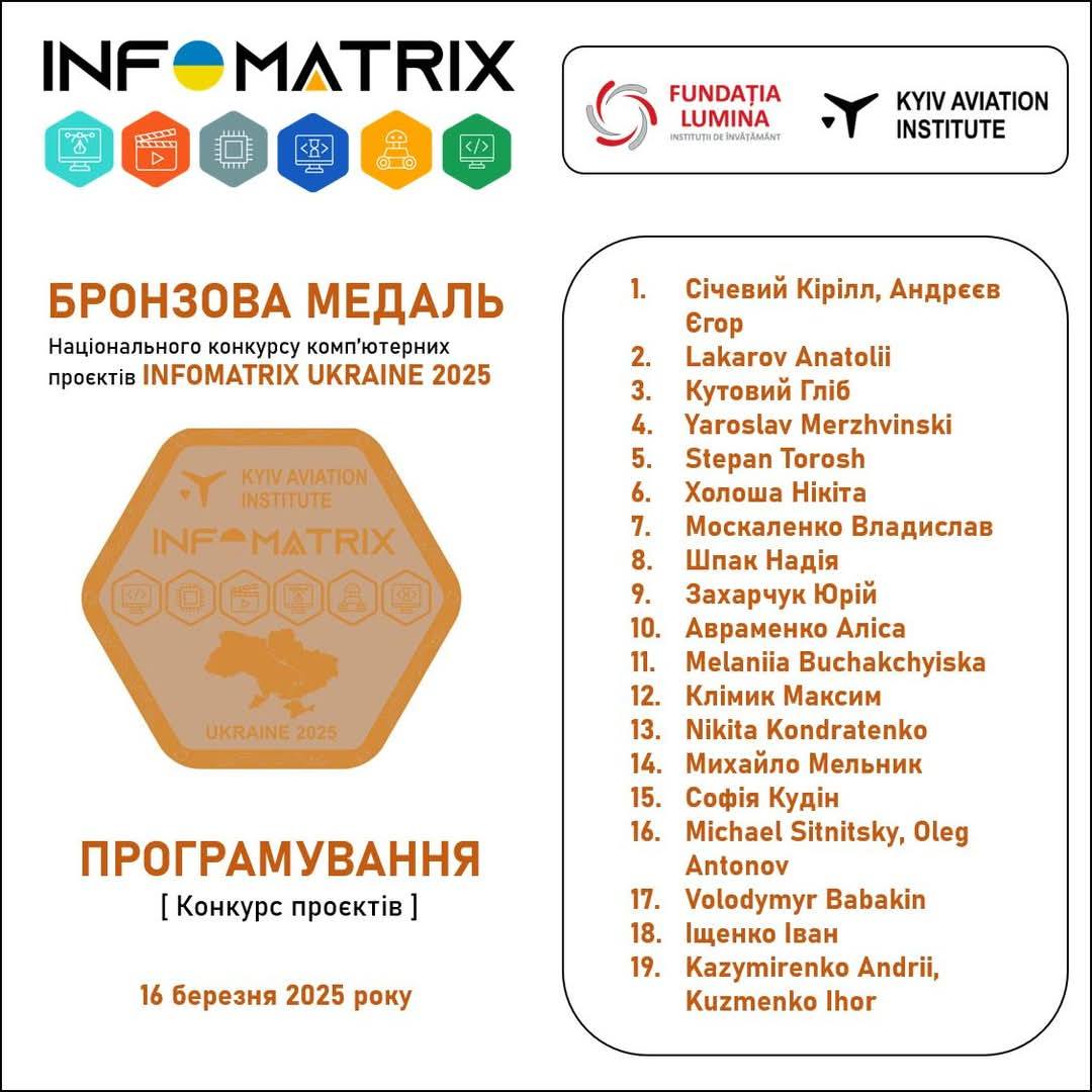 Вітаємо учня Криворізького ліцею №129 з нагородою на Національному конкурсі комп’ютерних проєктів «INFOMATRIX UKRAINE 2025»