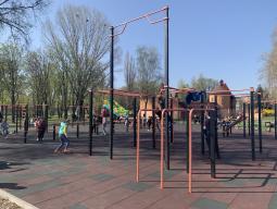 У парку «Ювілейний» на мультифункціональному спортивному майданчику, який з’явився завдяки муніципальному конкурсу «Громадський бюджет» бавиться малеча, підлітки грають у мініфутбол, баскетбол та волейбол, охочі мають змогу зайнятися воркаутом.