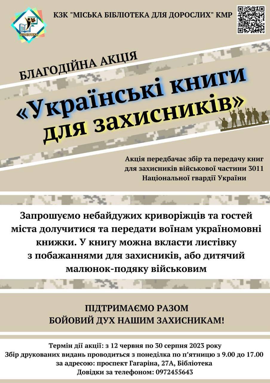 Запрошуємо долучитися до благодійної акції «Українські книги для захисників»