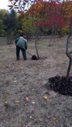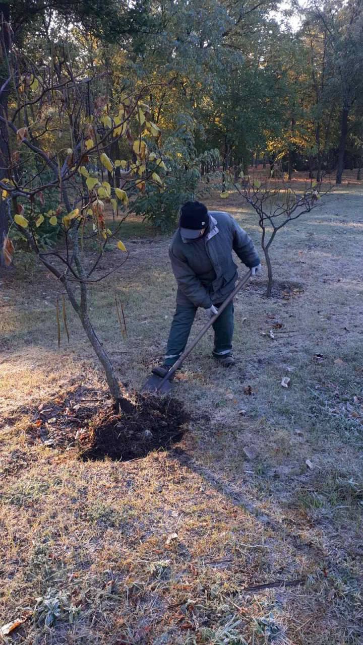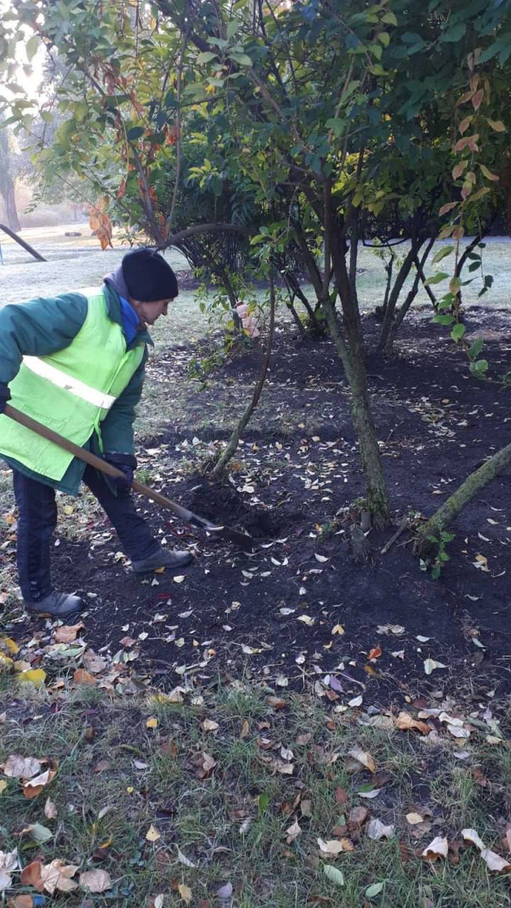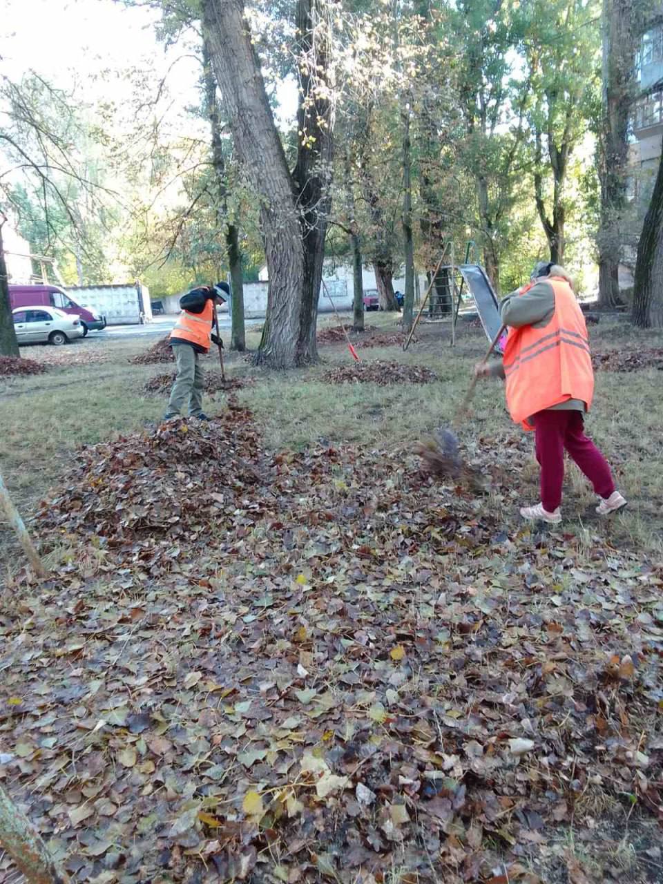 Комунальні служби і управителі доглядають за деревами та кущами, прибирають опале листя в парках, прибудинкових територіях