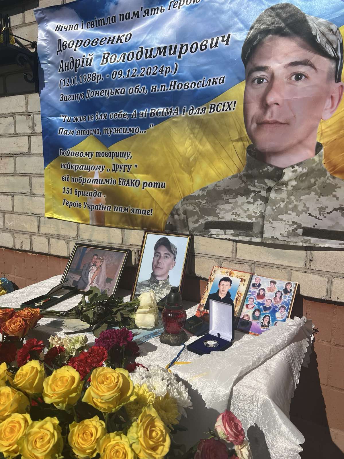 ДВОРОВЕНКО АНДРІЙ ВОЛОДИМИРОВИЧ, солдат, водій кранівник Евакуаційного відділення евакуаційного взводу евакуаційної роти ремонтно-відновлювального батальйону. Загинув поблизу населеного пункту Новосілка Волноваського району Донецької області, захищаючи незалежність, суверенітет і територіальну цілісність України.