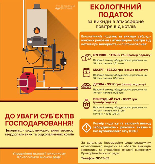 Зазначимо, що управління екології виконкому Криворізької міської ради у разі потреби може надати змістовні роз’яснення щодо розрахунку екологічного податку та обсягів викидів від котлів.