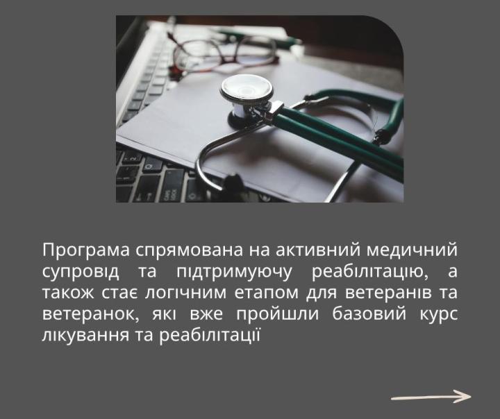 Експериментальна програма спрямована на активний медичний супровід та підтримуючу реабілітацію, а також стає логічним етапом для ветеранів та ветеранок, які вже пройшли базовий курс лікування та реабілітації.