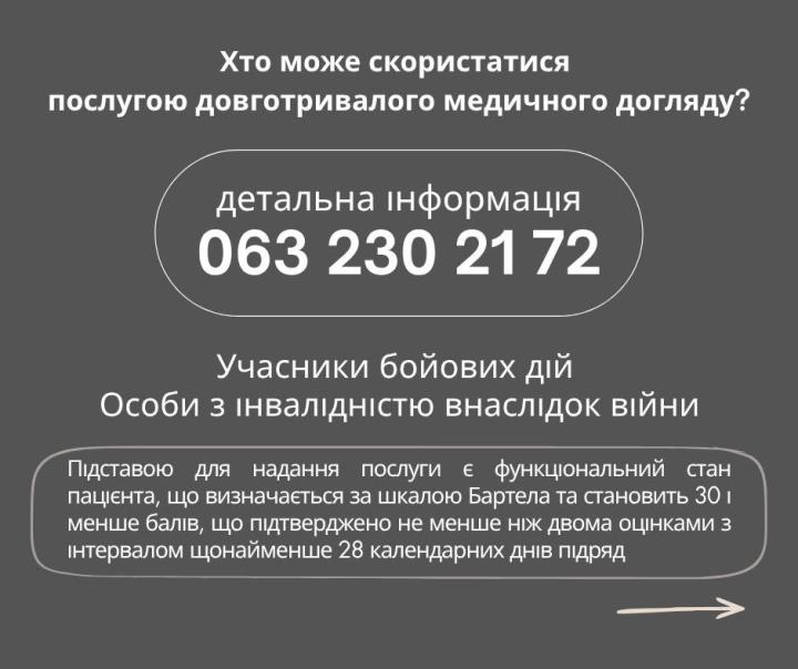 Ветерани та ветеранки, які внаслідок поранень, травм чи тяжких захворювань потребують постійної медичної, реабілітаційної та соціальної підтримки, зможуть отримувати довготривалий медичний догляд БЕЗОПЛАТНО.