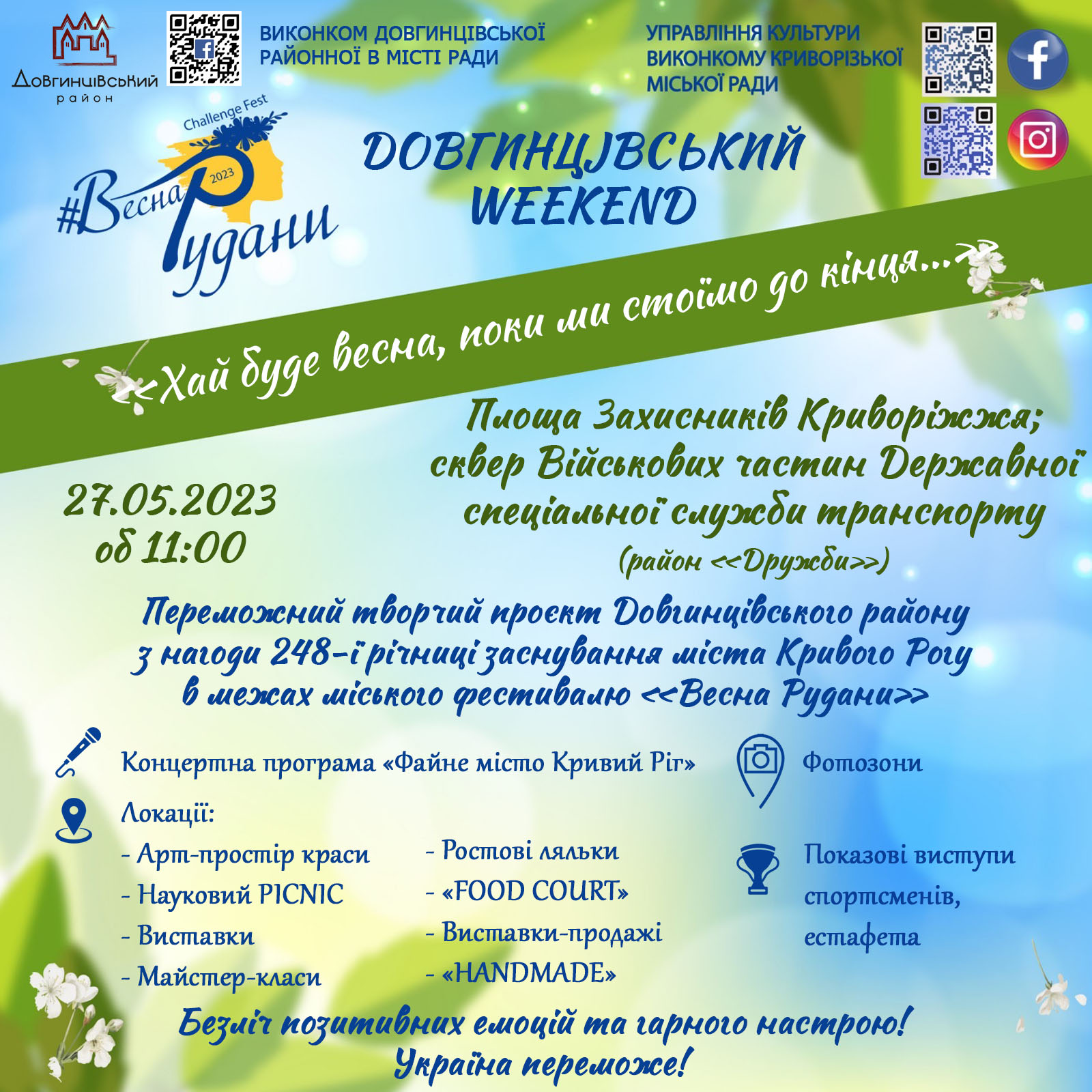 Запрошуємо на районні заходи з нагоди 248-ї річниці заснування міста Кривого Рогу в межах міського фестивалю «Весна Рудани».