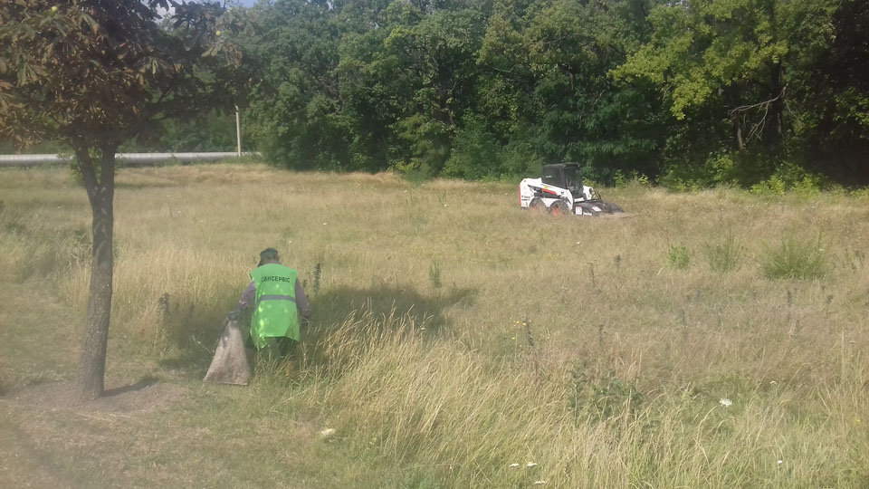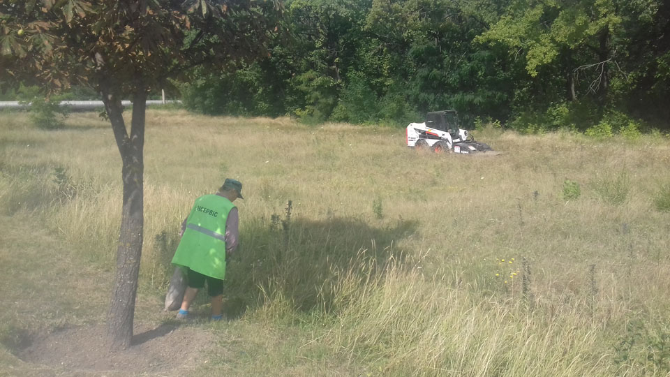 Працівниками КП «Сансервіс» проводиться благоустрій та покіс трави по вул. Дніпровське шосе.