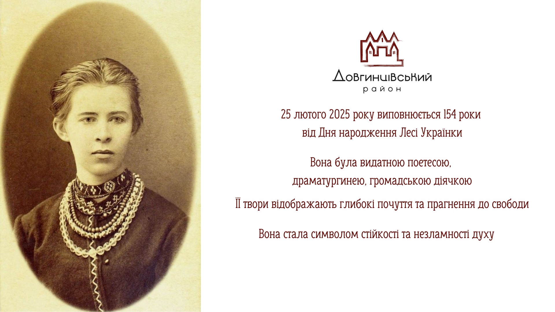 25 лютого 2025 року виповнюється 154 роки від Дня народження Лесі Українки