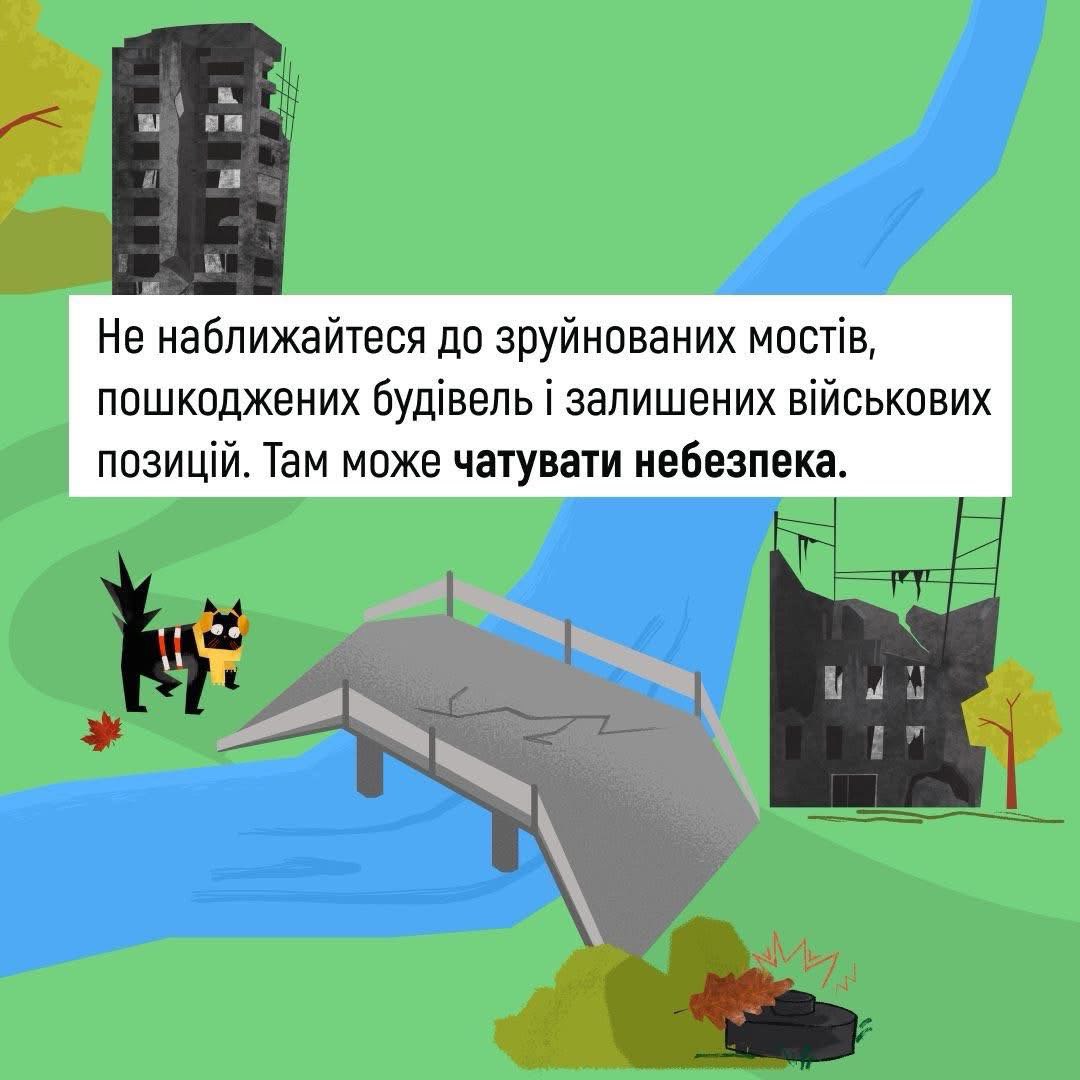 Війна змінила знайомі нам місця, тож навіть звичні маршрути зараз потребують особливої уважності. Перегляньте разом інфографіку ДСНС – вона стане у пригоді, щоб легко й спокійно все пояснити.