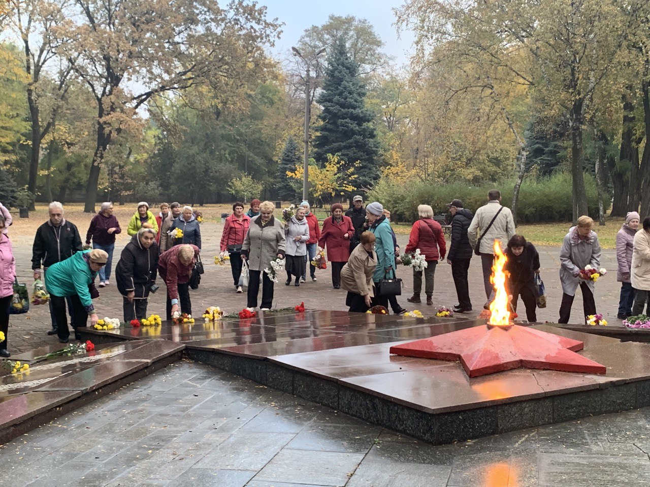 Напередодні, 27 жовтня відбулася церемонія покладання квітів до братської могили у Парку залізничників.