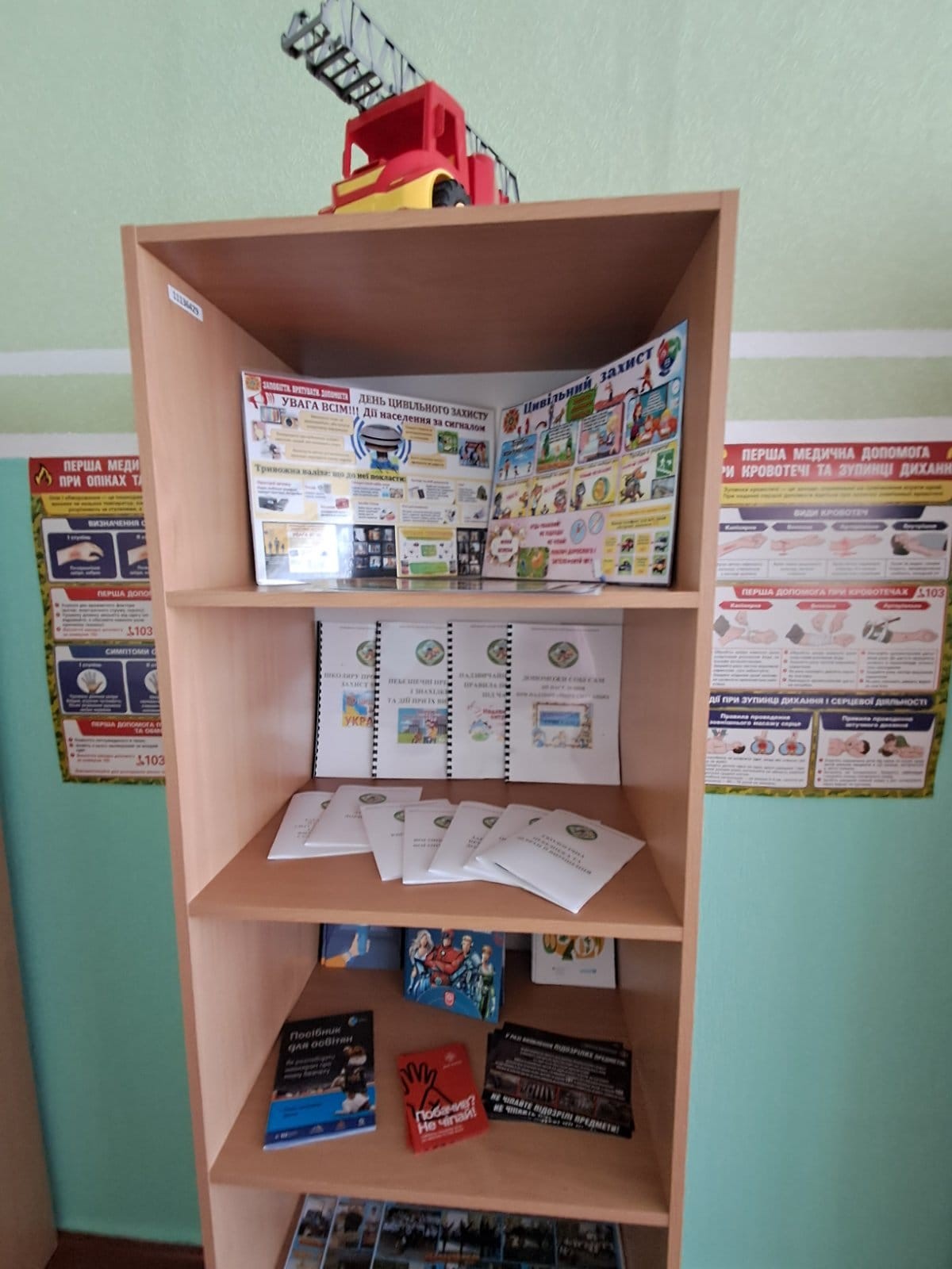 Сам кабінет поділили на кілька навчальних зон: зона мінної безпеки, пожежної безпеки, домедичної допомоги, безпеки життєдіяльності та зону психологічного розвантаження.