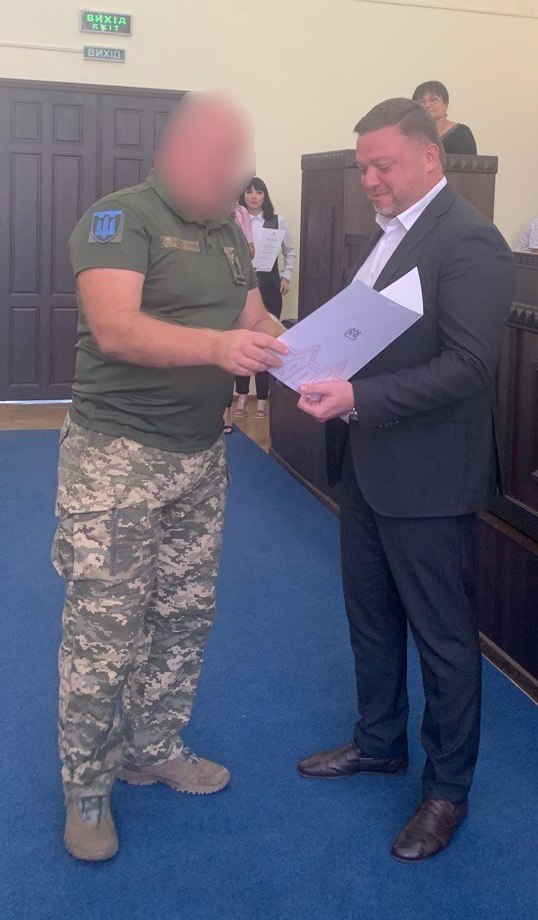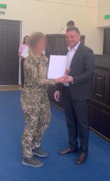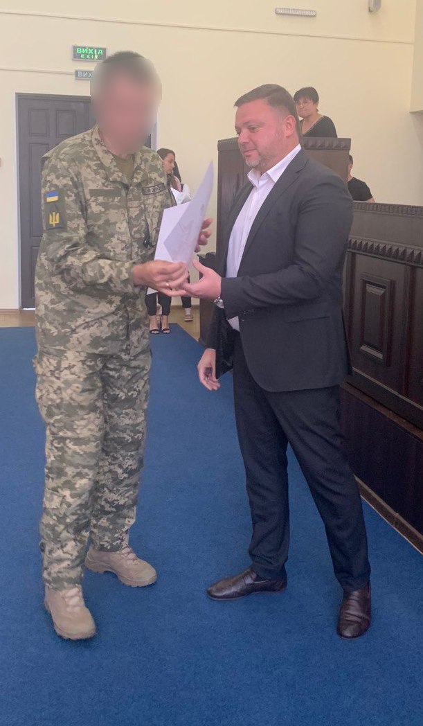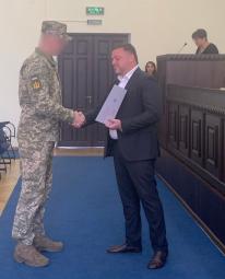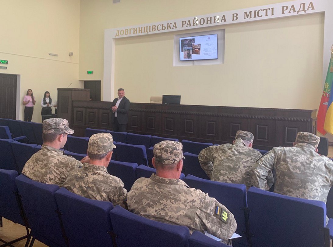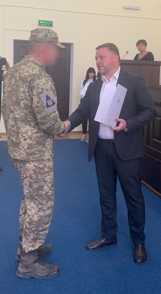 Голова районної в місті ради Ігор Ратінов привітав військовослужбовців, які сьогодні стоять на захисті незалежності і суверенітету України, висловив слова шани і вдячності захисникам і захисницям та відзначив нагородами виконкому районної в місті ради.