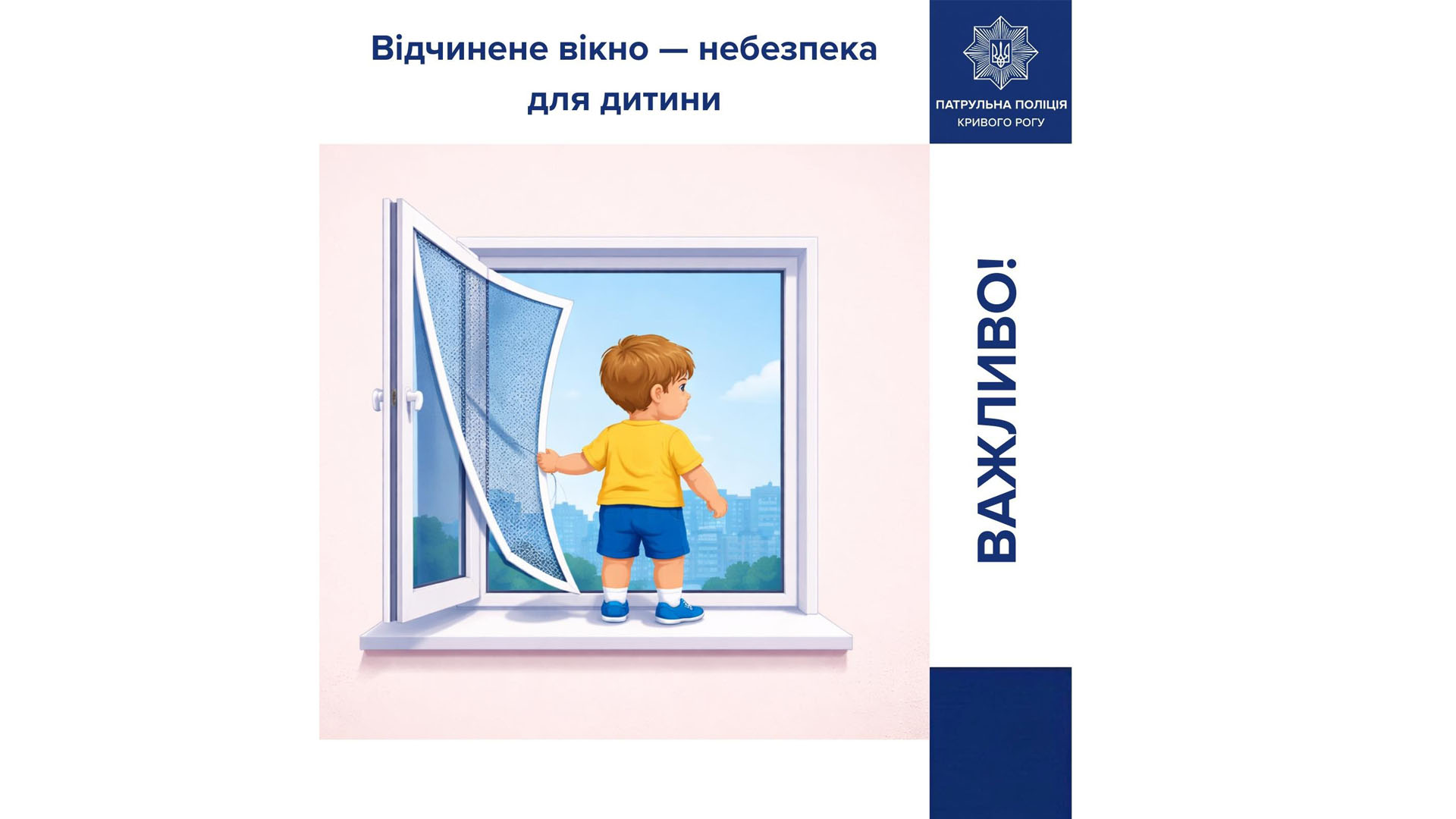 - Розповідайте дітям про небезпеку відкритих вікон і привчайте старших пильнувати за молодшими.