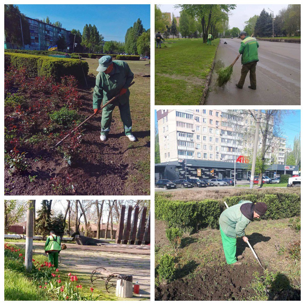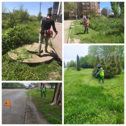 Тривають роботи з прибирання випадкового сміття, прополки кущів, вивезення великогабаритного сміття, ручного прибирання тротуарів, покосу трави тощо.