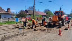 КП «Швидкісний трамвай» виконує ремонт трамвайного полотна.