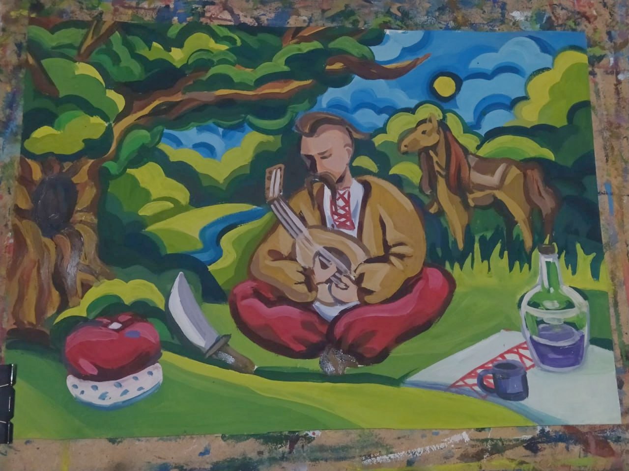 Діти своїм баченням та художніми засобами передали весь колорит українського козацтва, мужність і патріотизм українського народу (викладачі Онищенко Н.В. та Новік Л.Д.).