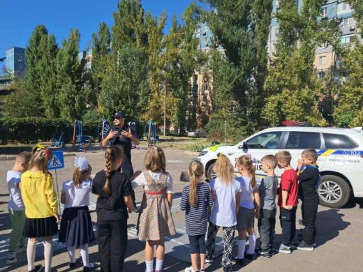 В рамках Місячника безпеки дорожнього руху «Увага! Діти на дорозі!» в закладах освіти проходять зустрічі з представниками патрульної поліції: інтерактивні уроки; ігри; вікторини та практичні заняття.