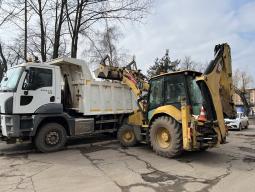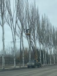 Продовжується омолодження дерев, погрузка і вивіз гілля з території району (роботи виконує КП «Сансервіс»). Об’єкти бізнесу виконують подрібнення гілок на підпорядкованих територіях.
