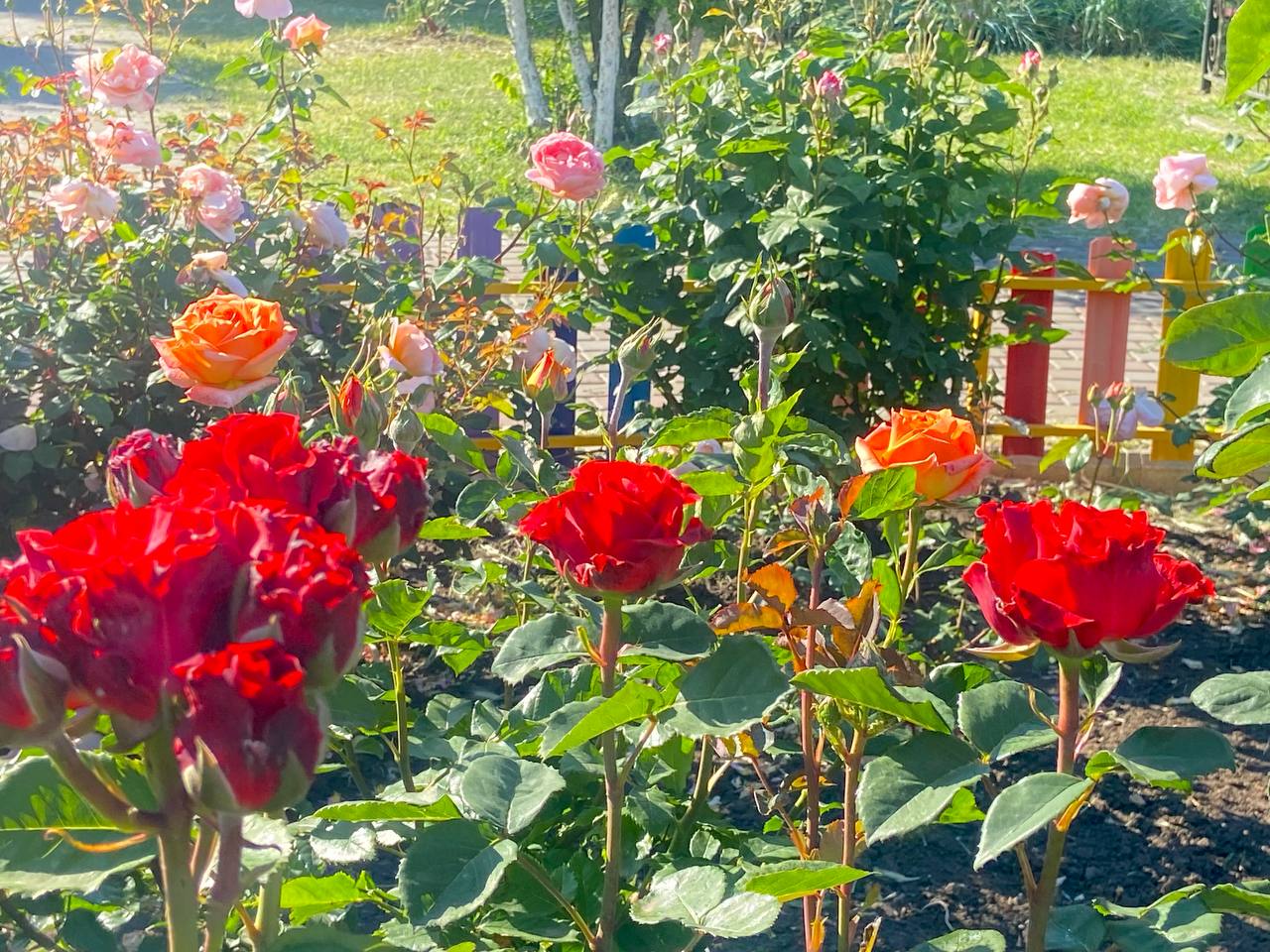 Яскравий розарій в сквері на мікрорайоні «Східний-2» не залишить Вас байдужими та безперечно вразить багатством трояндової краси.