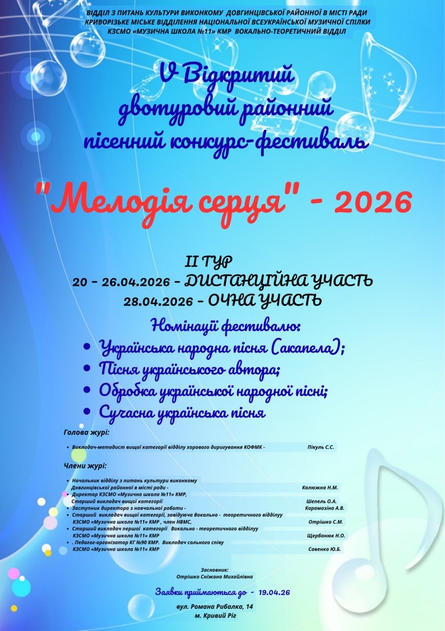 V відкритий двотуровий районний пісенний конкурс-фестиваль «Мелодія серця»-2026