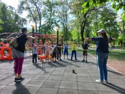 (парк «Ювілейний», креативні педагоги ЦДЮТ «Гармонія» провели спортивні естафети та рухливі ігри на свіжому повітрі для малечі нашого району).
