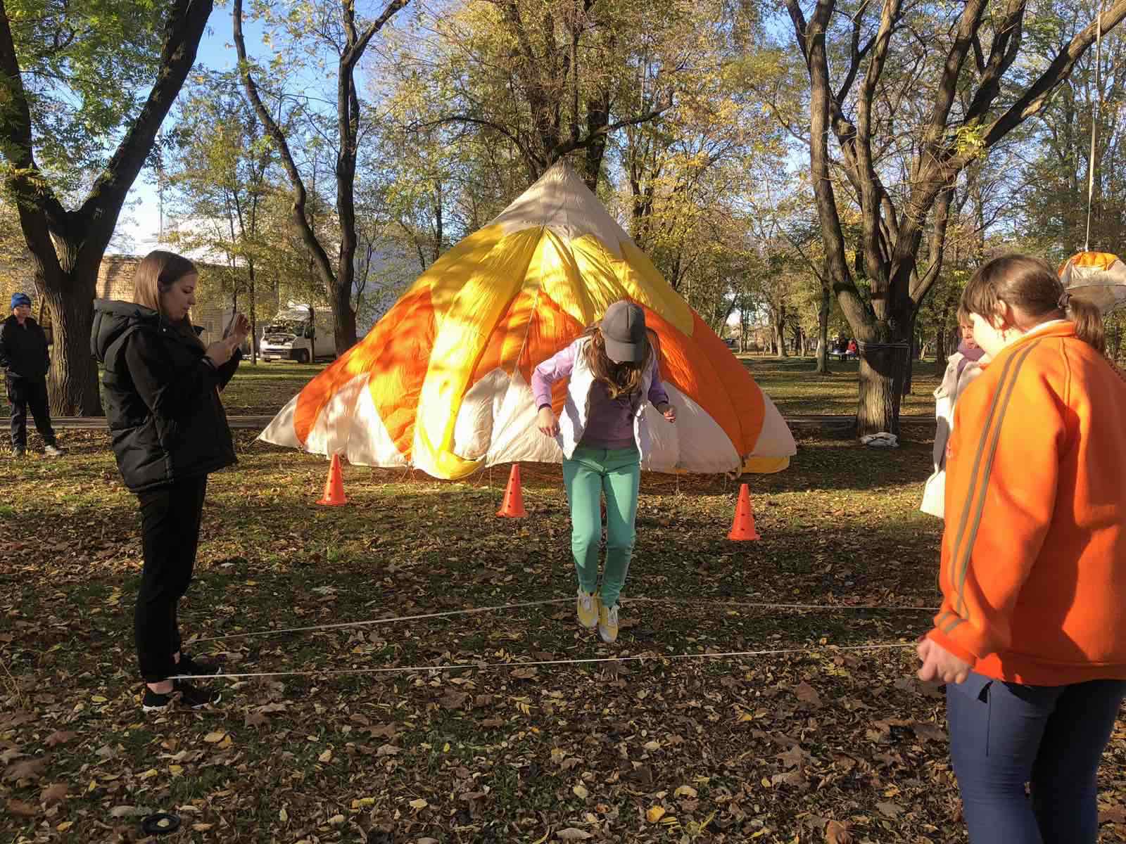 Про неперевершене відчуття, яке виникає у вільному польоті, коли вітер намагається укласти людину в свої обійми розповідали своїм вихованцям інструктори-методисти комунального закладу позашкільної освіти «Клуб «Юний авіатор» Криворізької міської ради під час показових виступів з парашутного спорту у сквері Військових частин Державної спеціальної служби транспорту.