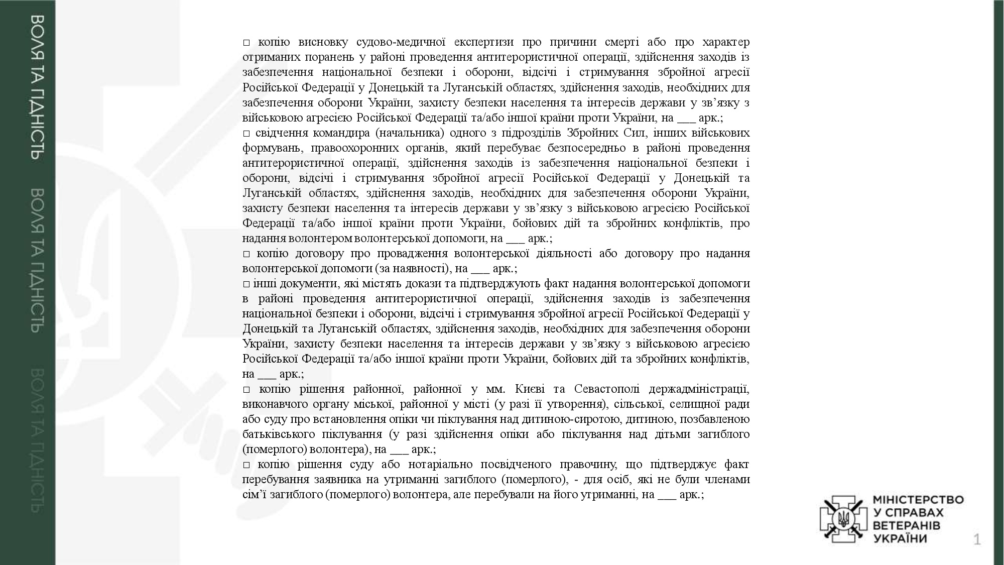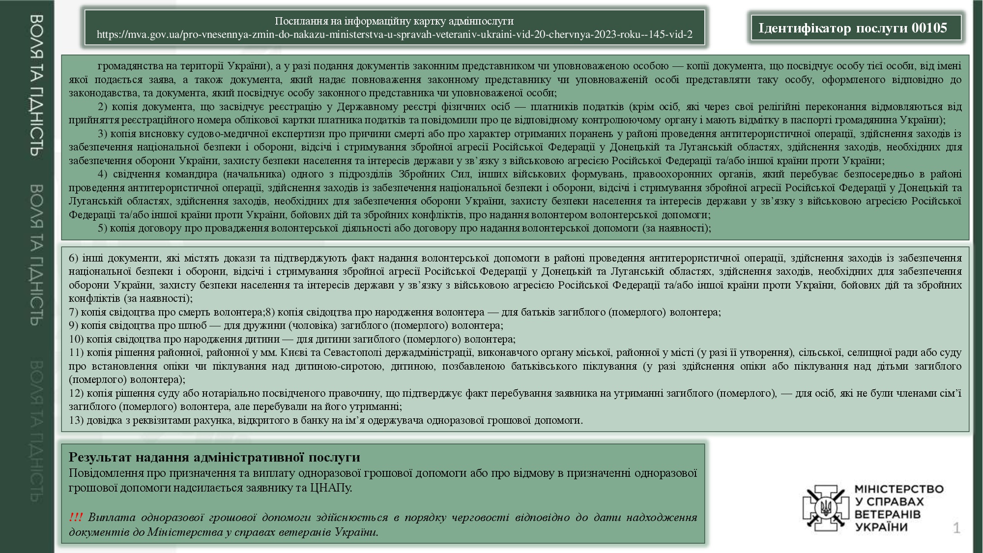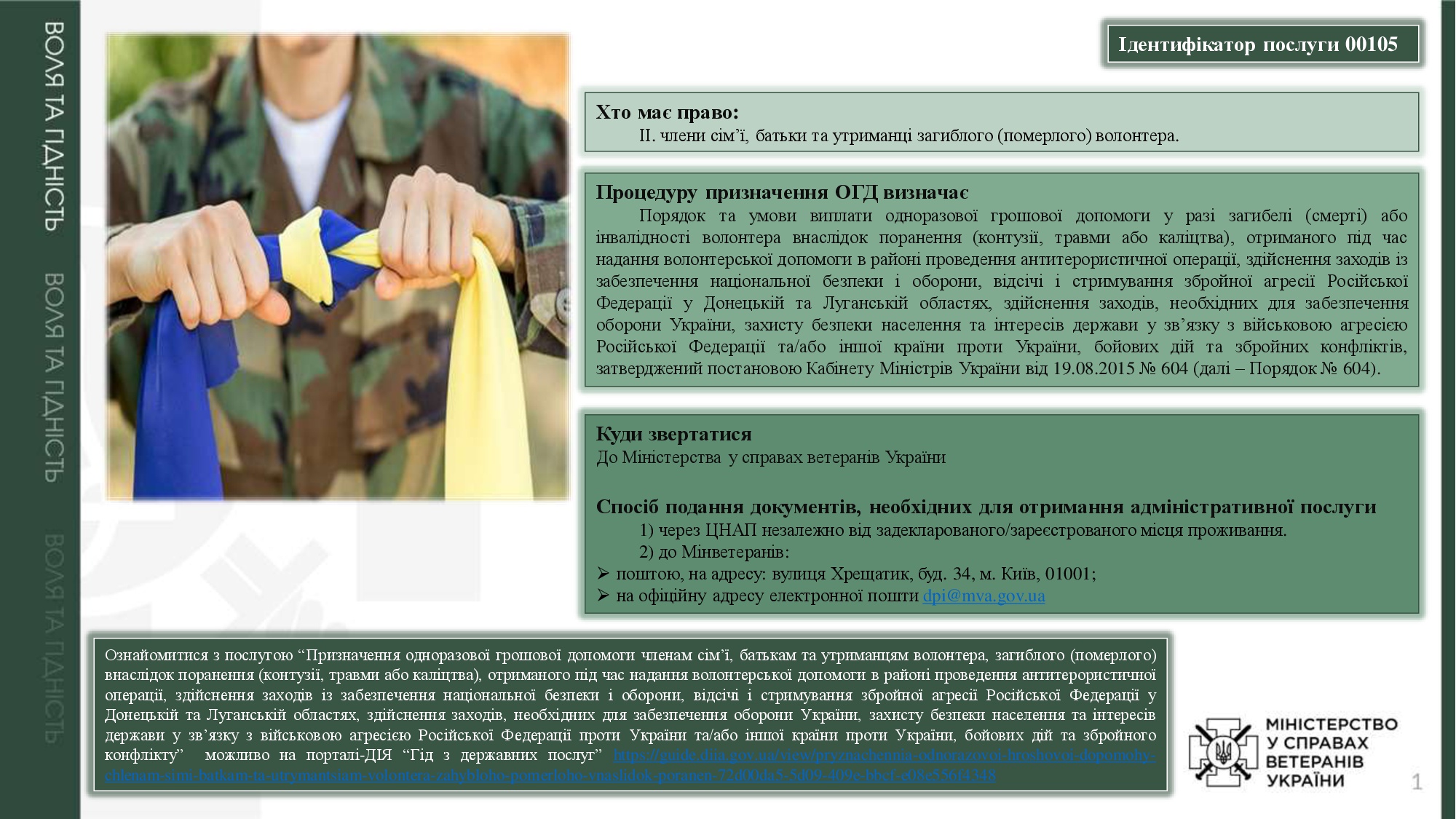 Адміністративні послуги, суб`єктом надання яких є Мінветеранів