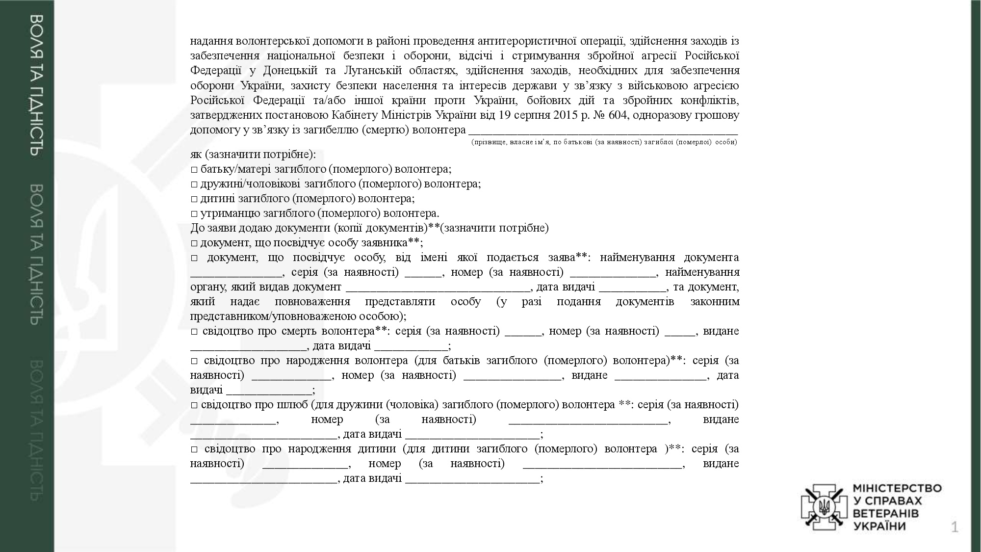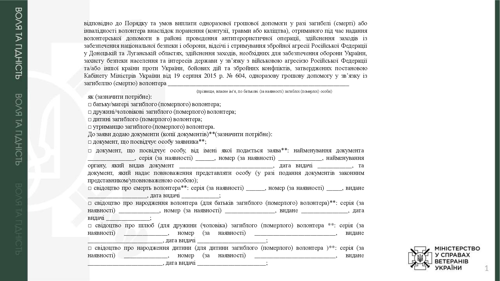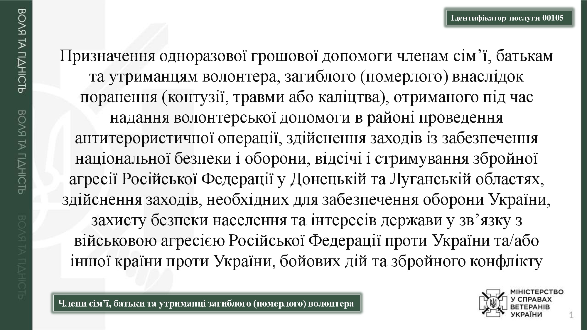 Адміністративні послуги, суб`єктом надання яких є Мінветеранів