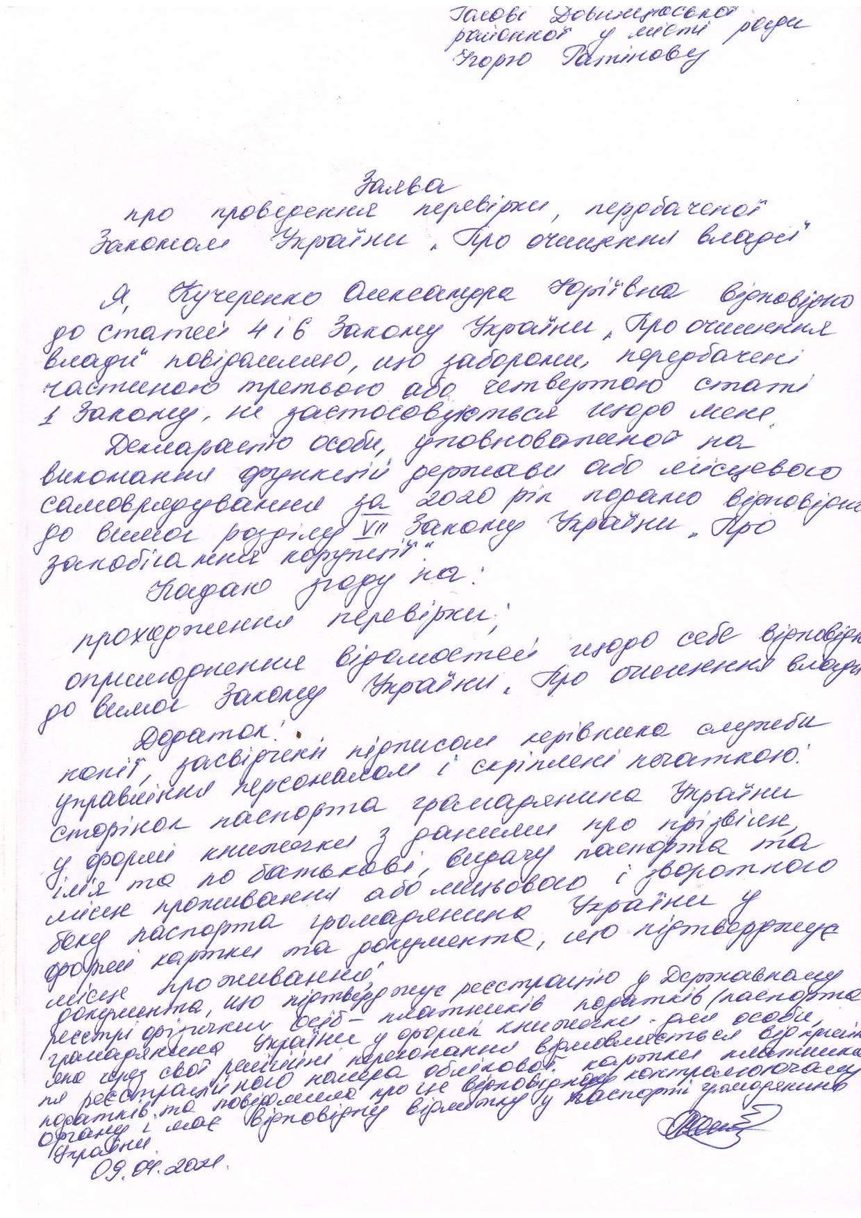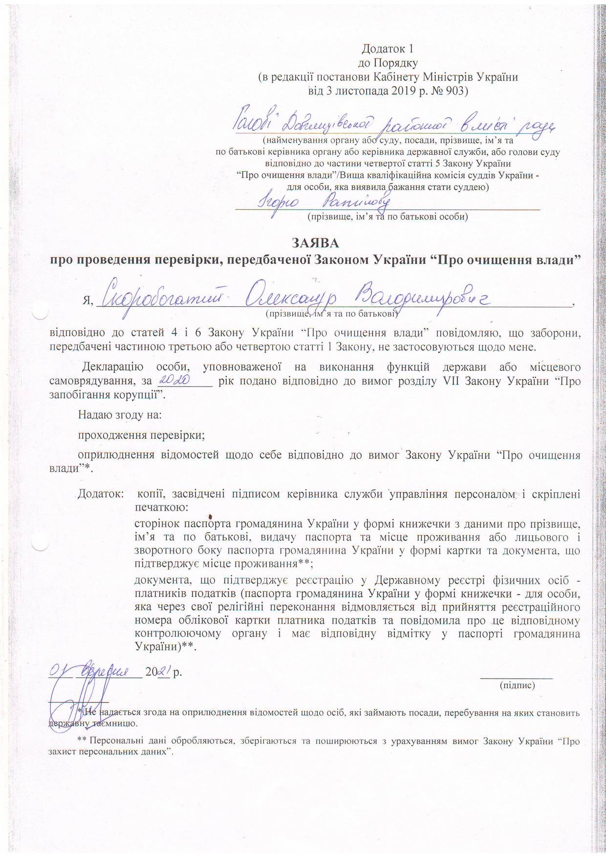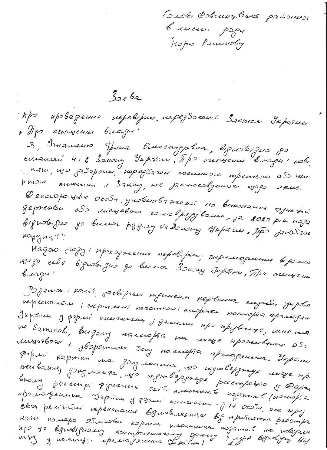 Заява про проведення перевірки, передбаченої Законом України «Про очищення влади».